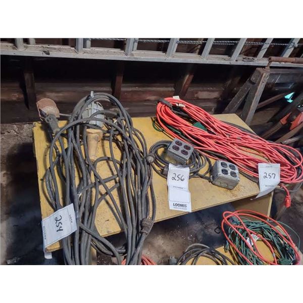 LOT OF 2 FOUR PLUG EXTENSION CORDS, 2 HEAVY DUTY WORK LIGHTS, MISC